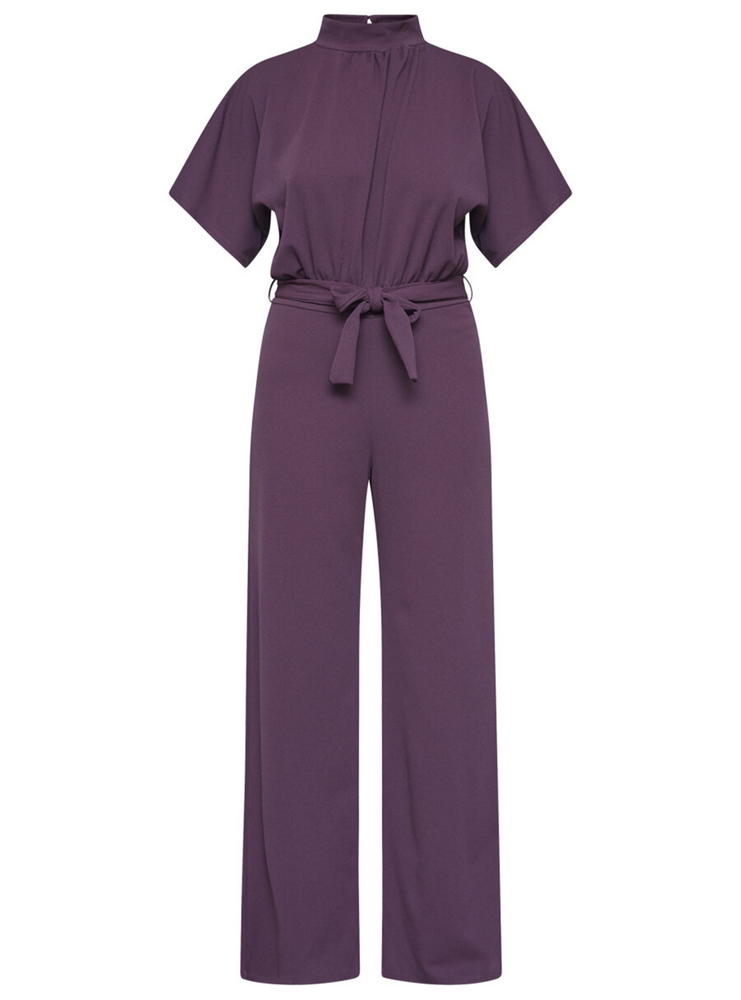Het ontwerp valt op door een V-hals die een elegante, vrouwelijke uitstraling geeft, en luchtige korte mouwen die zorgen voor comfort en een frisse look. De wijde pijpen creëren een moderne en chique flair, terwijl de verwijderbare tailleband je de vrijheid geeft om de jumpsuit naar wens te stylen. Een subtiel open split aan de bovenkant van de rug voegt een speels detail toe zonder te veel te tonen.