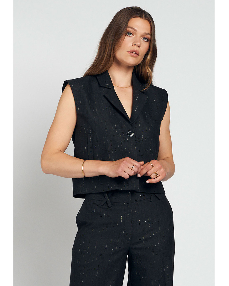 Spooq The LabelSarah Gilet Pinstripe Glitter Zwart 1