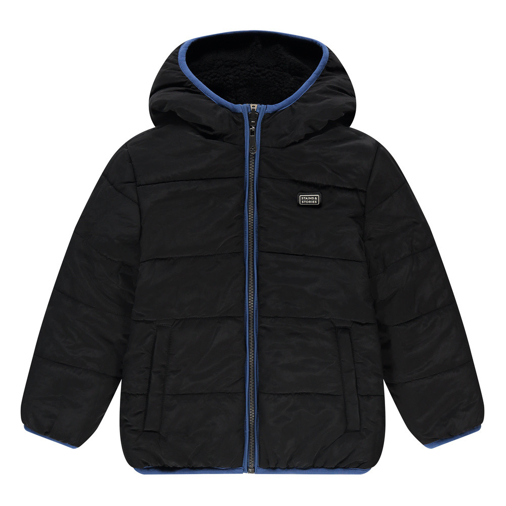 Stains & Storiesboys winter teddy jacket reversible navy-offwhite Donker Blauw