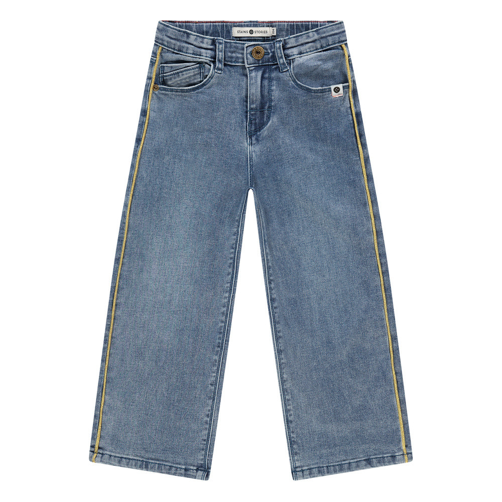 Stains & Storiesgirls denim wide leg leopard lurex piping Blauw