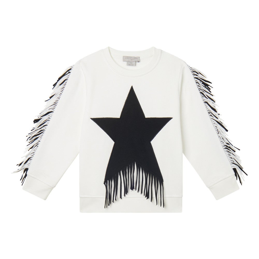 Stella McCartney KidsSweatshirt Star and Fringes Off White