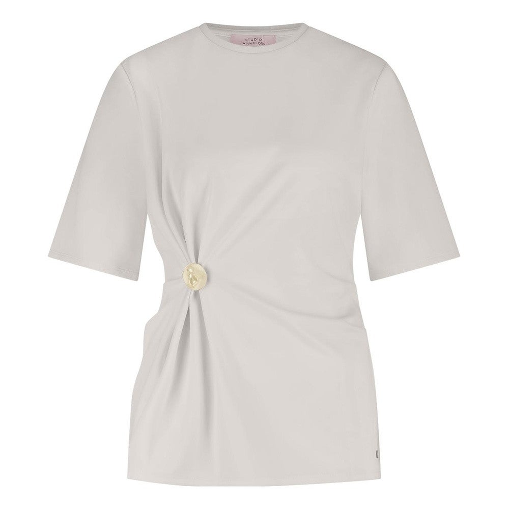 Op zoek naar een top die moeiteloos klasse en comfort combineert? De Almamia top van Studio Anneloes is precies wat je nodig hebt. De zachte ecru kleur geeft een rustige, verfijnde uitstraling, terwijl het subtiele goudkleurige detail zorgt voor een vleugje elegantie. De ronde hals en regular fit maken deze top geschikt voor elke dag, van werkdag tot weekend. Dankzij de luxe katoenmix voelt de stof licht en soepel aan op de huid, met precies genoeg stretch voor een perfecte pasvorm. Draag de Almamia op een pantalon voor een nette look, of combineer met een jeans voor een relaxte outfit met een stijlvolle twist. Het model is 179cm en draagt een 36.