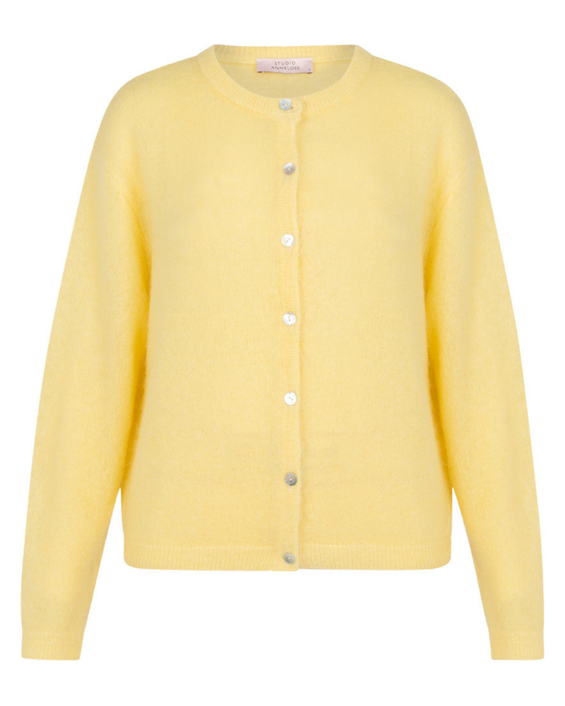 De Bibi Mohair Cardigan van Studio Anneloes is een heerlijk zacht vest dat jouw outfit direct een elegante, moderne uitstraling geeft. Dankzij de luchtige mohairmix voelt dit knitwear-item warm maar toch licht aan, waardoor het ideaal is voor zowel frisse ochtenden als gezellige avonden. De cardigan heeft een regular fit, lange mouwen en een subtiele structuur die zorgt voor een luxe look. Het leukste detail? De Bibi is twee kanten op te dragen. Draag de knopen klassiek aan de voorkant of kies voor een trendy twist door ze stijlvol op de rug te dragen. Dit vest combineert moeiteloos met jeans, een vrouwelijke jurk of een nette pantalon. Een veelzijdig en comfortabel item dat in geen enkele Studio Anneloes garderobe mag ontbreken.