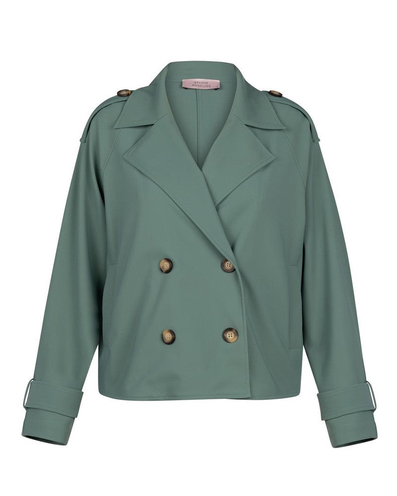 De Studio Anneloes Cato Bonded Trenchcoat is een moderne dames jas die iedere outfit direct een stijlvolle finishing touch geeft. Dit korte trenchcoat‑model is stijlvol, elegant en comfortabel. Het ontwerp beschikt over epauletten op de schouders, knoopmanchetten en een double-breasted sluiting, waardoor de jas zowel elegant als stoer oogt. De jas is uitgevoerd in bonded travelstof, waardoor hij soepel draagt en ideaal is als tussenjas voor verschillende seizoenen. De Cato Bonded Trenchcoat van Studio Anneloes is perfect voor vrouwen die een stijlvolle, veelzijdige tussenjas zoeken. Combineer hem met een nette broek en blouse voor een verzorgde look, of draag hem casual over een jeans en T‑shirt voor een moderne, ontspannen outfit. Met deze trenchcoat voeg je een eigentijds, praktisch én modieus item toe aan je garderobe.