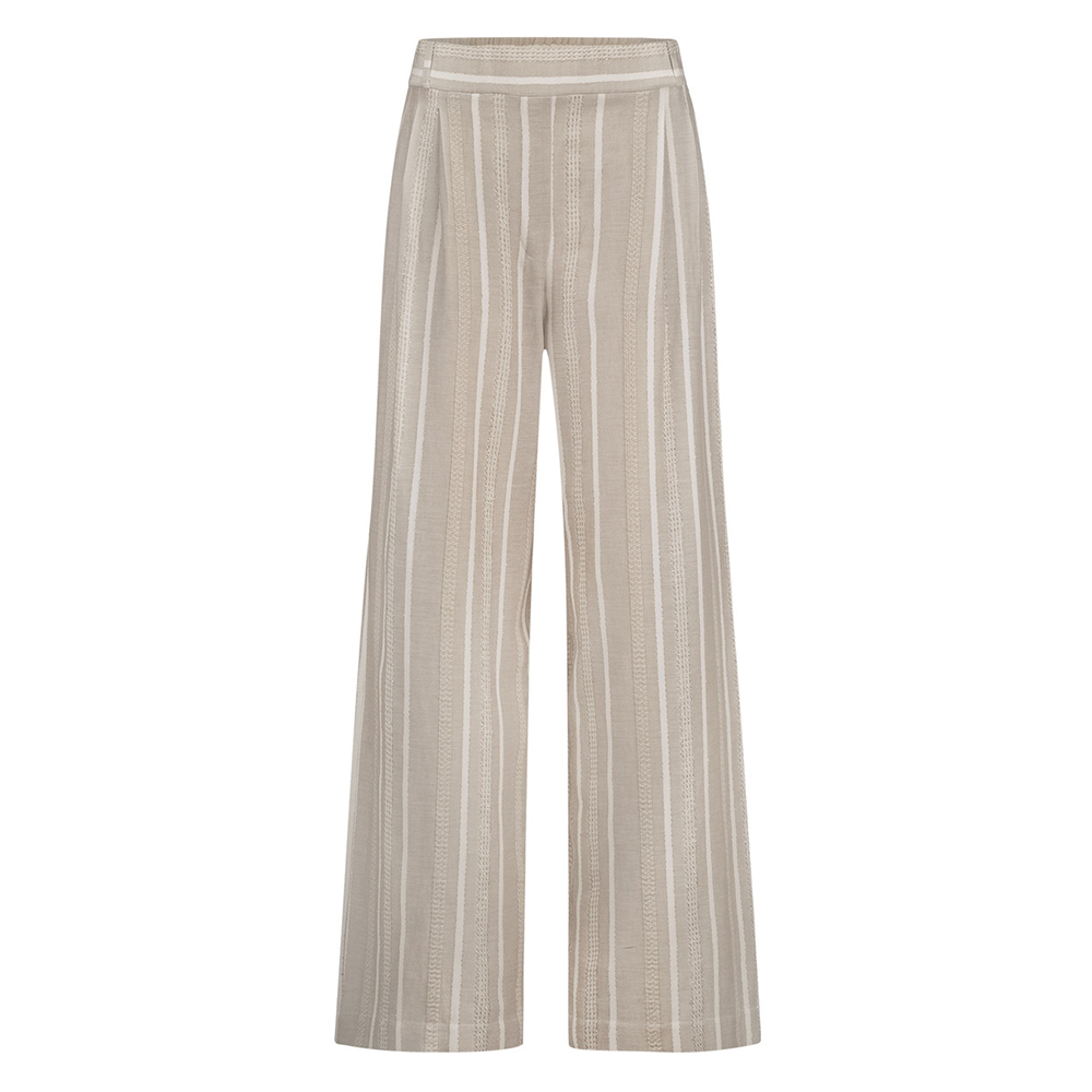 Ga stijlvol en comfortabel de zomer in met de Fardeau Gold Stripe Trousers van Studio Anneloes. Deze latte-kleurige broek is gemaakt van een luchtige linen mix, waardoor hij heerlijk draagt op warme dagen.