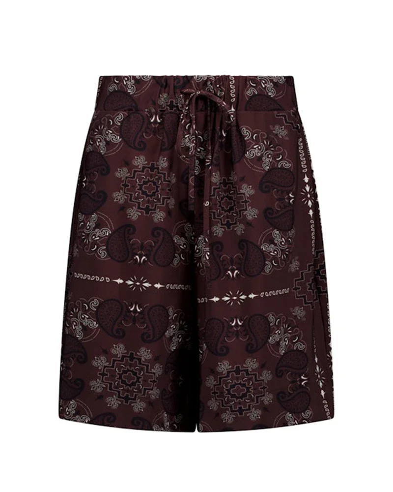 De Studio Anneloes Grace paisley shorts is een stijlvolle en comfortabele dames short die perfect past binnen een zomerse garderobe. De verfijnde paisley print geeft het item een elegante en speelse uitstraling, terwijl de rustige kleurcombinatie zorgt voor een chique en tijdloze basis die makkelijk te combineren is. De regular fit zorgt ervoor dat de short soepel en comfortabel valt langs het lichaam. De elastische tailleband met trekkoord geeft extra draaggemak en een relaxte pasvorm, waardoor de short ideaal is voor dagelijks gebruik. De steekzakken maken het ontwerp praktisch en geven een casual touch. De soepele travelkwaliteit voelt licht en prettig aan en beweegt fijn met je mee. Daardoor blijft de short mooi in vorm en is hij geschikt voor warme dagen, vakanties of ontspannen momenten. Voor een complete en stijlvolle set is deze Studio Anneloes short leuk te combineren met de Renske paisley V-neck top. Samen vormt dit een elegante co-ord outfit die comfortabel zit en er tegelijkertijd verzorgd en trendy uitziet.