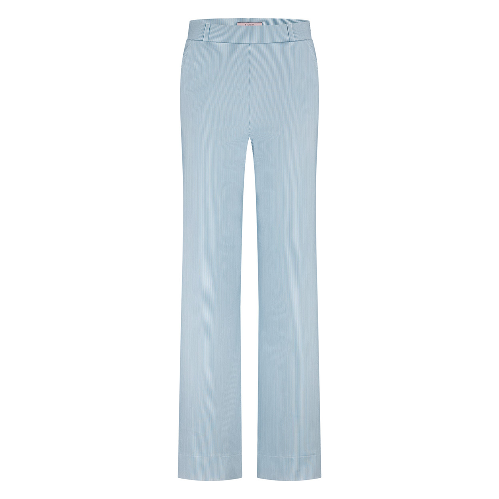 Comfort en stijl komen samen in de Lexie Stripe Trousers van Studio Anneloes. Deze heavy travelstof broek heeft een trendy wide fit model, waardoor hij losjes en luchtig valt en je een ontspannen, moderne uitstraling geeft. Het off white ontwerp met subtiele mid blue strepen maakt de broek extra bijzonder en makkelijk te combineren met allerlei tops.