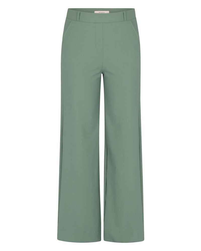 De Studio Anneloes Lexie Travel Bonded Trousers is een moderne dames broek die stijl en comfort moeiteloos combineert. Deze Studio Anneloes broek is gemaakt van comfortabele travelstof, waardoor hij soepel draagt en prettig mee beweegt tijdens dagelijkse activiteiten. Dankzij de high-waist pasvorm en de verzorgde snit krijgt je outfit direct een elegante basis, terwijl de wijde pijpen een tijdloos silhouet creëren dat bij veel verschillende looks past. De broek heeft een elastische tailleband met riemlussen. Deze Studio Anneloes trousers voor dames is veelzijdig te stylen. Combineer hem met een blouse en blazer voor een verzorgde, zakelijke outfit, of draag hem met een T-shirt of knit voor een modern-casual setje. De trouser werkt ook perfect in combinatie met sneakers of loafers voor een relaxed weekendgevoel, maar laat zich net zo goed stylen met nette schoenen voor een chic effect. Met de Studio Anneloes Lexie Travel Bonded Trousers voeg je een flexibel en stijlvol item toe aan je garderobe dat comfortabel, modern en makkelijk te combineren is. Of je nu kiest voor een nette look, een casual outfit of een gelaagde combinatie met een jas of blazer, deze dames broek vormt een verzorgde basis voor talloze outfits. Het model is 177 cm lang en draagt maat 36.