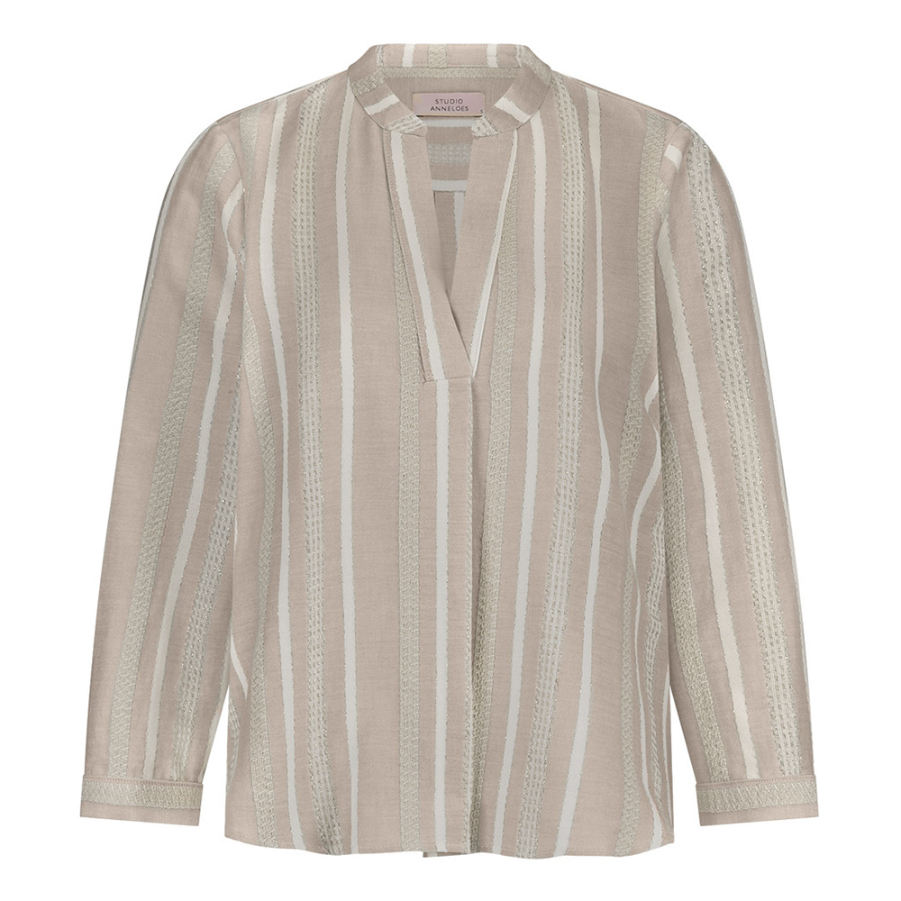 Geef je zomergarderobe een chique update met de Lieve Gold Stripe Top van Studio Anneloes. Deze stijlvolle top in de kleur latte is perfect voor zonnige dagen. Het luchtige linnen materiaal zorgt voor een heerlijk comfortabele pasvorm, zelfs als de temperaturen oplopen.