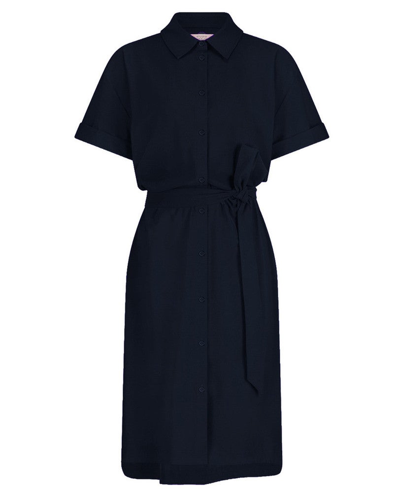 De Studio Anneloes Louni Blouse Dress is een elegante midi jurk die comfort en stijl moeiteloos combineert. De loose fit zorgt voor een ontspannen silhouet, terwijl het bijpassende ceintuur eenvoudig de taille accentueert voor een flatterend effect. Gemaakt van Travelstof, is deze jurk ideaal voor dagelijks gebruik en veelzijdig genoeg om verschillende looks te creëren. Deze Studio Anneloes jurk heeft een klassieke knopenlijst, korte omslagmouwen en een split aan de zijkant, wat zorgt voor extra bewegingsvrijheid en een luchtige, verzorgde uitstraling. Het losvallende model biedt comfort zonder in te leveren op elegantie, waardoor hij geschikt is voor zowel werk, een lunchafspraak of een casual dagje uit. Combineer de Louni Blouse Dress met een ceintuur om het silhouet te benadrukken, of draag hem los voor een nonchalante, moderne look. Door de soepele Travelstof blijft de jurk mooi in model, kreukvrij en comfortabel gedurende de hele dag. Het model Loren is 177 cm lang en draagt maat 36.