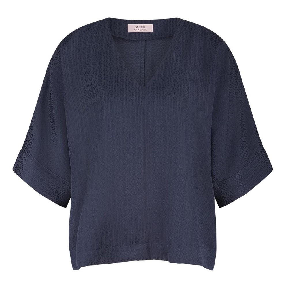 Studio AnneloesMadison mono jacquard top Donker Blauw