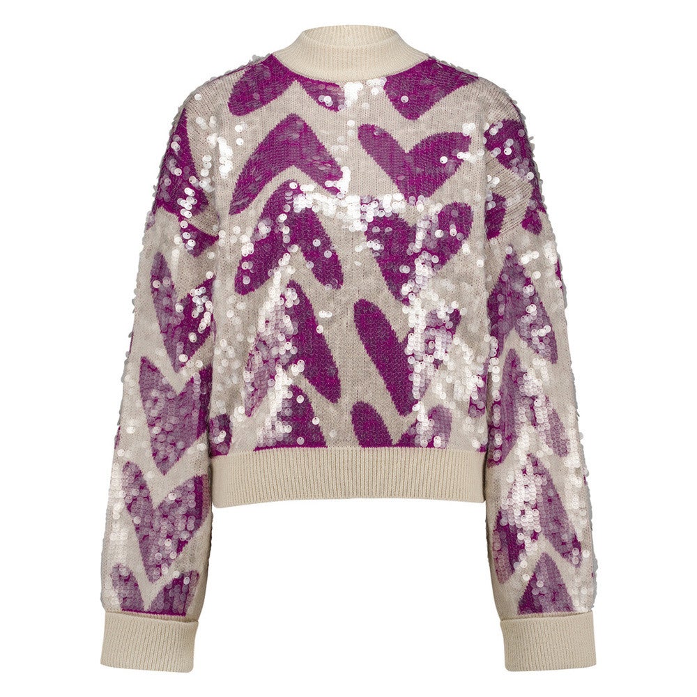 De Noah heart pullover van Studio Anneloes is een speelse sweater die een hartjes patroon heeft mét transparante pailletten. De omgeslagen boorden en de ribstructuur bij de hals maken de trui extra stijlvol.