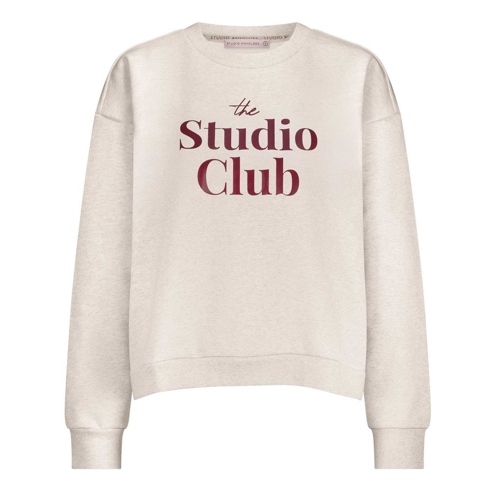 De Puck studio sweater in Kit van Studio Anneloes is een echte musthave voor wie houdt van comfortabele casual wear met een stijlvolle twist. Deze trui heeft een relaxte pasvorm met dropped shoulders en een ronde hals, waardoor hij moeiteloos combineert met zowel jeans als een rok. De opvallende The Studio Club-print op de voorzijde geeft de sweater een moderne en speelse uitstraling.