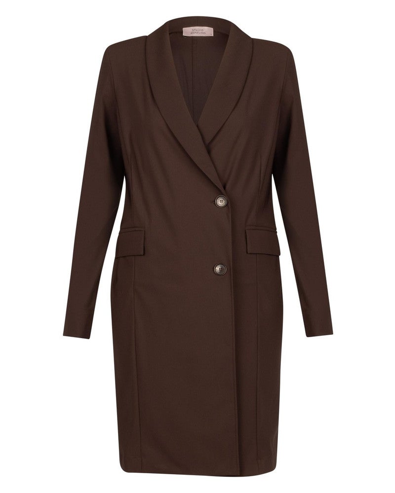 De Studio Anneloes River Blazer Dress is een opvallende dames blazer dress die stijl en attitude moeiteloos samenbrengt. Dit item combineert de structured look van een blazer met de vrouwelijke silhouette van een jurk, waardoor je een outfit krijgt die zowel modern als elegant oogt. Deze Studio Anneloes blazer dress voor dames is perfect voor verschillende gelegenheden. Draag haar solo met sneakers of enkellaarsjes voor een stoere, trendy look met een casual twist. Wil je je outfit wat netter maken, combineer de River Blazer Dress dan met hakken en subtiele accessoires voor een stijlvolle set voor een diner, feestje of een avondje uit. Met de Studio Anneloes River Blazer Dress voeg je een fashion item toe dat stijlvol, veelzijdig en makkelijk te combineren is. Deze blazer dress heeft een Oversized fit. Het model is 178 cm lang en draagt maat 36 op deze foto.