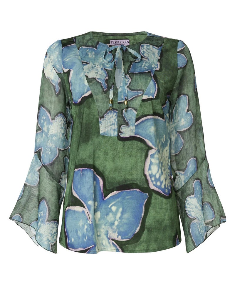 De Tessa Koops Ylio Warhol Top is een stijlvolle en vrouwelijke dames top met een prachtige bloemenprint die iedere outfit een frisse en kleurrijke touch geeft. Deze dames top is vervaardigd uit hoogwaardige Italiaanse viscose jersey en chiffon, waardoor hij zacht, licht en comfortabel draagt. Deze dames top heeft een elegante V-hals en lange, wijd uitlopende mouwen, wat zorgt voor een speels en luchtig effect. Dankzij de losse pasvorm valt de top soepel en is hij gemakkelijk te combineren met verschillende kledingstukken. Voor een casual look draag je de Ylio Warhol Top bijvoorbeeld op een jeans, waardoor een moeiteloze en trendy outfit ontstaat. Deze Tessa Koops top met bloemenprint is perfect voor zowel werk, een dagje uit als een zomerse gelegenheid. Met de Ylio Warhol top kies je voor een elegante, comfortabele en moderne look. Een must-have voor vrouwen die houden van bloemenprints, wijdvallende mouwen en stijlvolle dames tops.