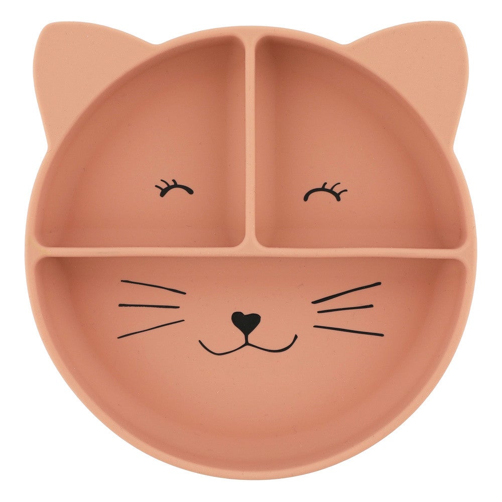Eten wordt een feestje met dit Siliconen MRS. Cat bord met vakjes en zuignap van trixie. Met de handige zuignap blijft het bordje goed vastzitten op platte ondergronden. Met de verschillende vakjes kan je kindje smaken, structuren en kleuren ontdekken. Het bord is gemaakt van 100% siliconen, is zacht en breekt niet als hij valt. Bovendien kan hij in de magnetron, oven, diepvries en bovenste rek van de vaatwasser.