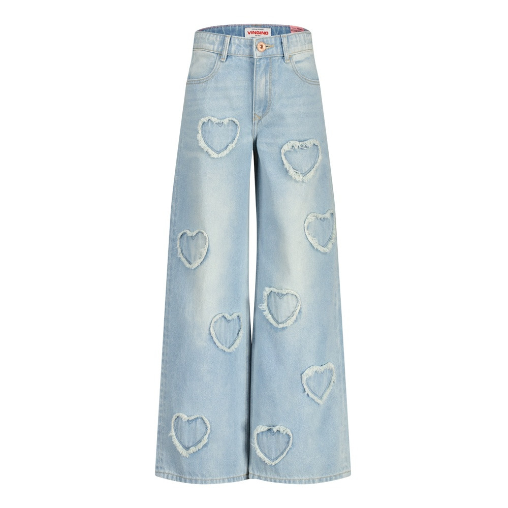 VinginoCassie Special Jeans Extra Wide Leg Hearts Licht Blauw