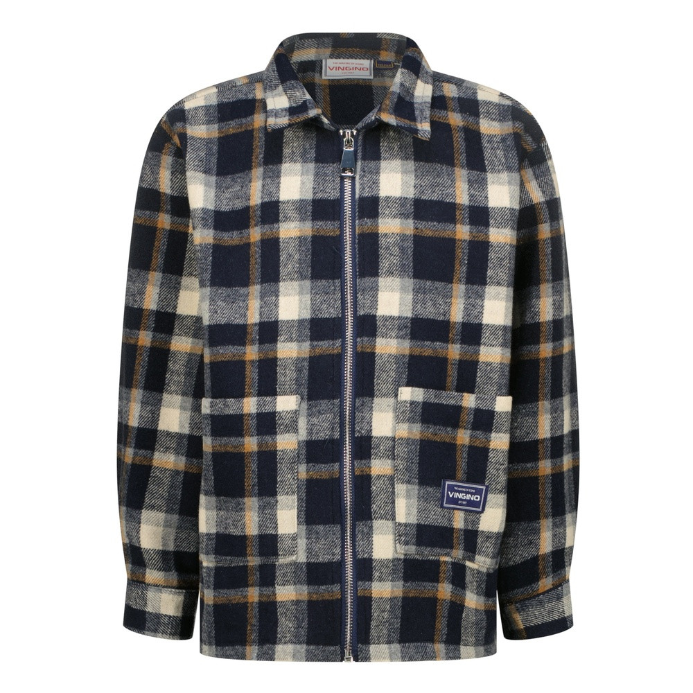 VinginoLeck Checked Shirt Zipper Donker Blauw