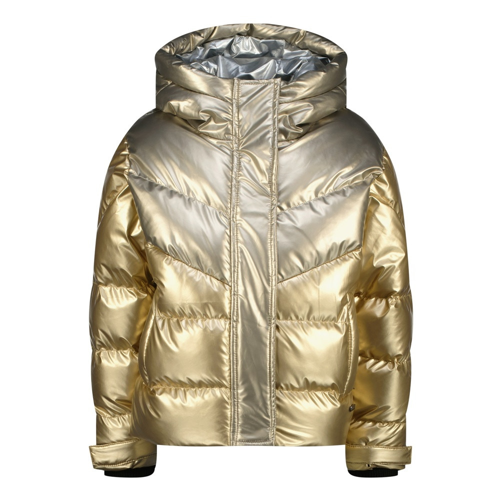 Laat je dochter stralen met de Vingino Toly jas in een opvallende gold metallic kleur. Deze winterjas is perfect voor meiden die graag opvallen en tegelijkertijd warm en comfortabel de winter willen doorkomen. De glanzende goudtint geeft elke outfit een trendy en speelse touch, of het nu voor school, een dagje stad of buitenspelen is.