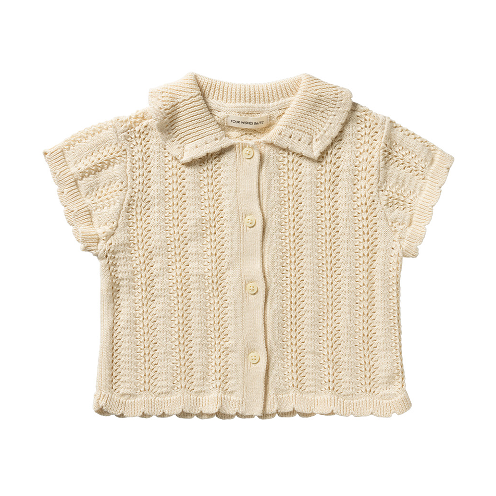 Ajour gebreid topje met knopen, draag hem met de bijpassende broek !