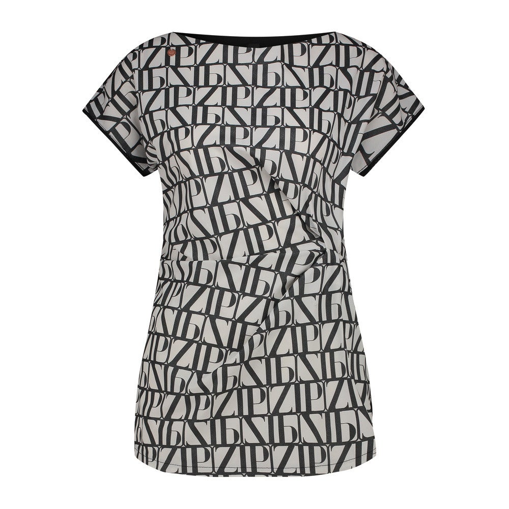 ZIP73Top plooi all-over print zwart wit Zwart KL