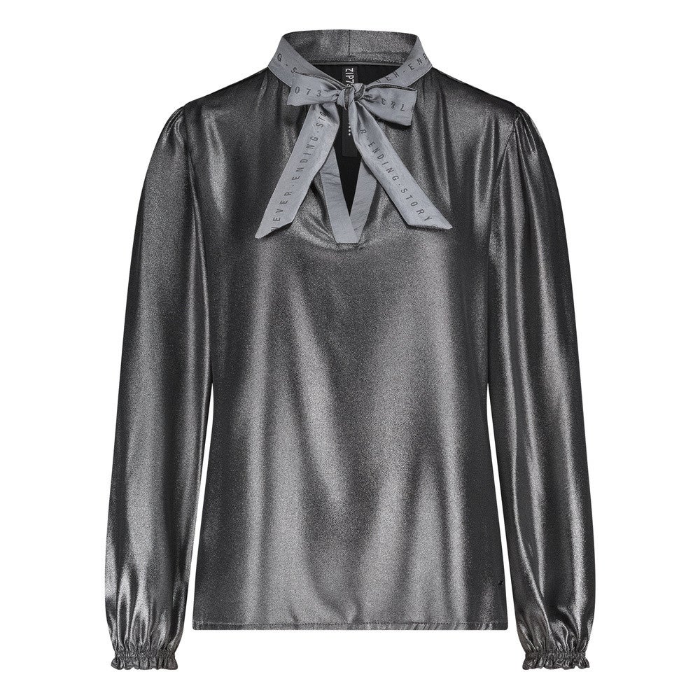 ZIP73Top Scarf-Tie Metallic Grey Zilver