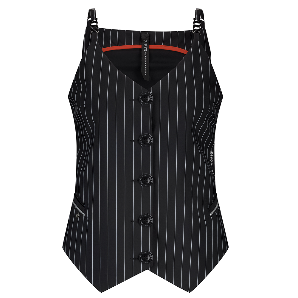 ZIP73Waistcoat Pinstripe Black Zwart 1